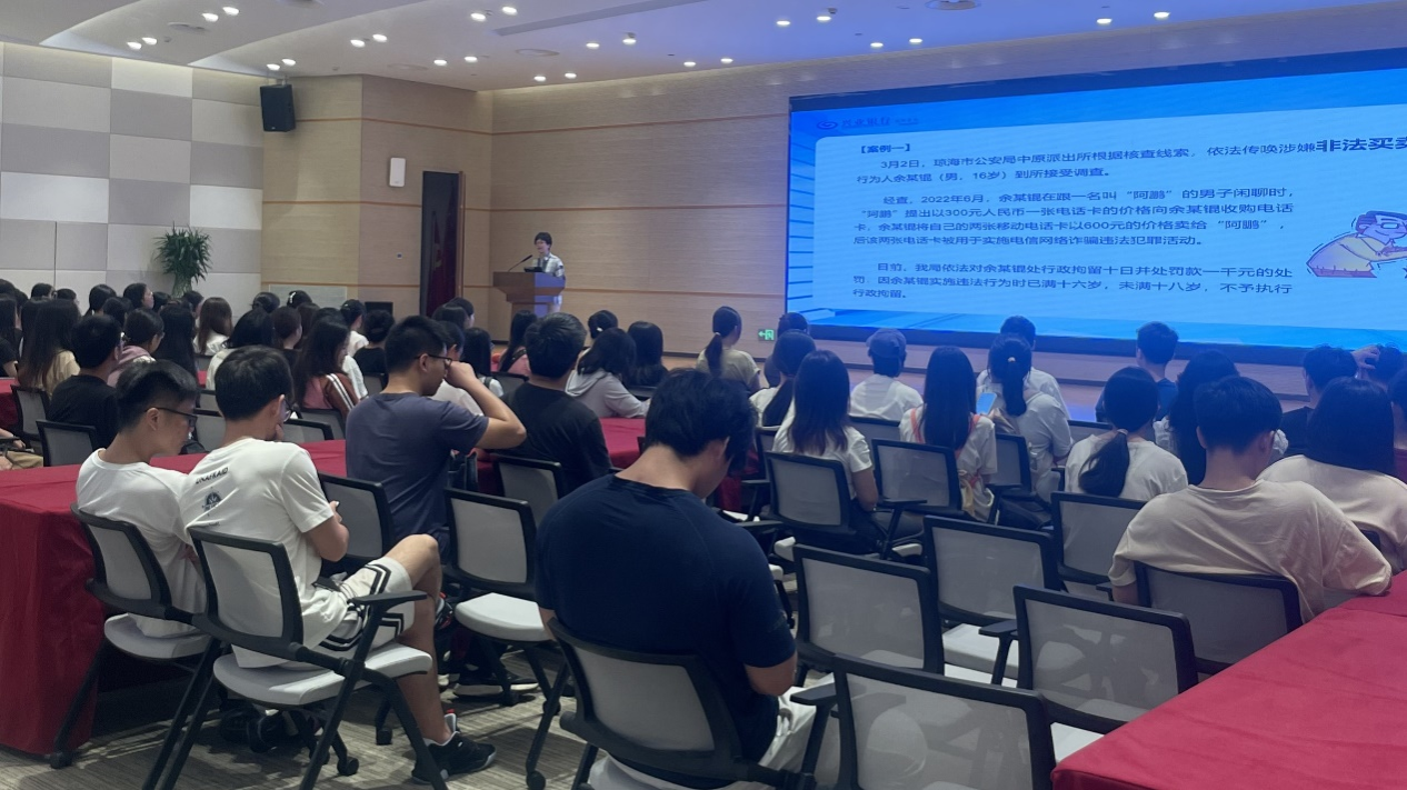 最后一站,师生们来到了国家级投教基地——国海证券投资者教育基地。讲解员带领同学们认真学习我国证券行业的发展史,并参观了南宁市滨湖路营业部的工作环境。随后,营业部总经理刘力开展了证券知识讲座,介绍了证券行业的发展状况及特点、国海证券的发展历程等,引导同学们树立正确的投资理念,增强风险防范意识,提升金融素养。最后,中通支付南宁负责人开展了反诈骗知识宣讲,同学们认真聆听并踊跃参与互动答题。