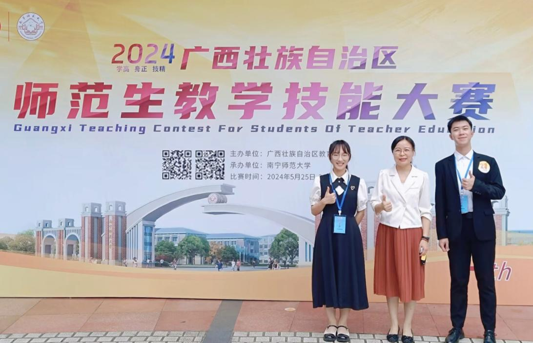 5月25日—26日,由广西壮族自治区教育厅主办,suncitygroup太阳集团承办的2024年全区师范生教学技能大赛在公司明秀校区举办。公司学子在比赛中表现优异,2名参赛选手全部获奖。其中,宣懿芳获得中学数学组初中学段一等奖,王望丞获得中学数学组高中学段二等奖。