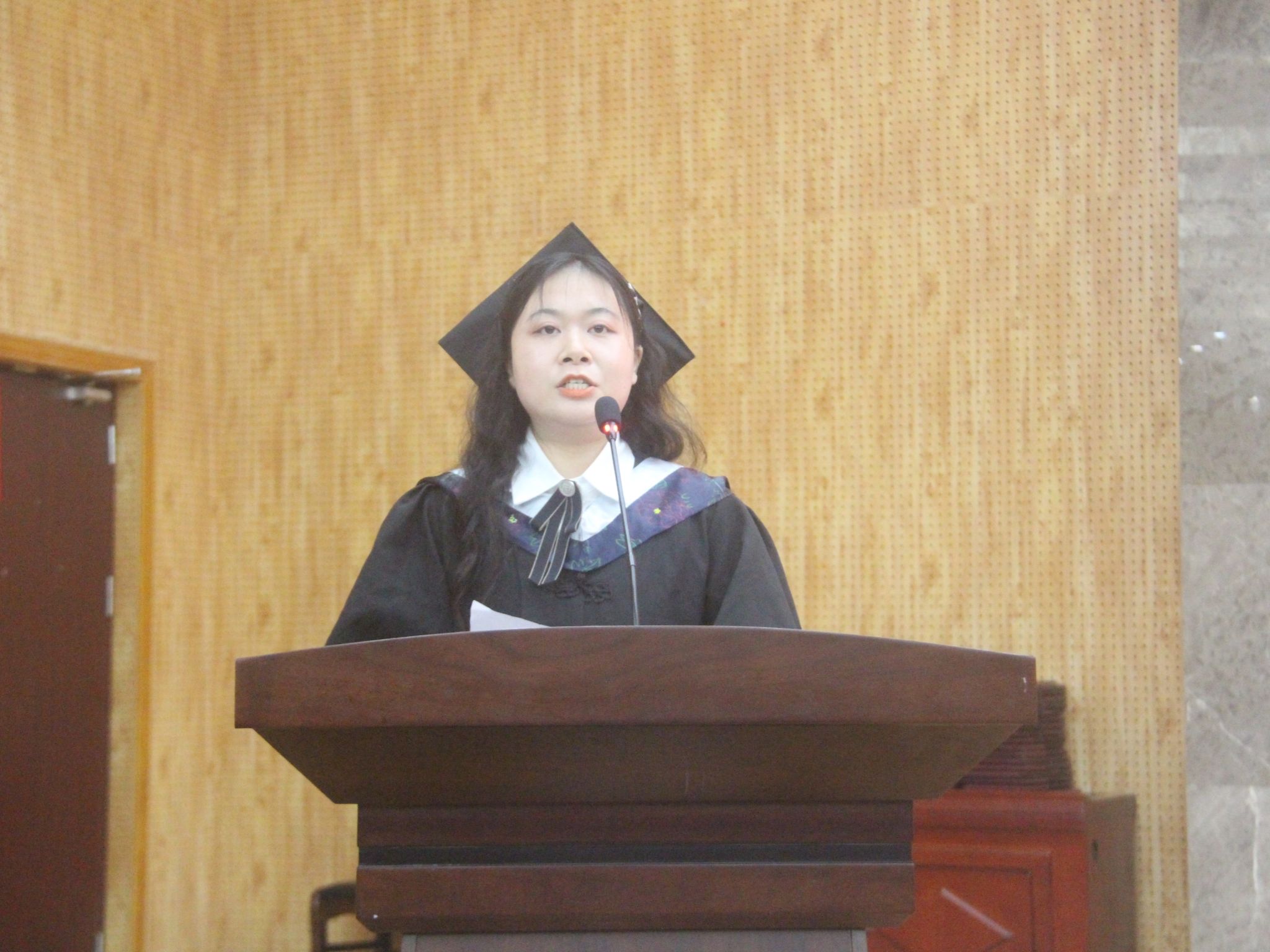 典礼开始前,大家共同观看了特别制作的满载回忆的视频和师生祝福短片。上午10点,典礼在庄严的国歌中正式拉开序幕,优秀毕业生代表徐磊同学、邵靖涵同学依次上台进行发言,他们对母校、公司以及老师多年的培养表示感谢,表达了对母校、公司的不舍之情以及对未来的美好期盼。毕业班班主任代表陶源泉老师在发言中回顾了同学们在校学习生活的点滴,并希望同学们不忘初心,带着大家的美好祝福,勇毅前行。接着,该院黄在堂经理上台致辞,他希望毕业生们在未来的道路上怀揣梦想,扬帆起航,永远保持一颗敢于拼搏的心,书写属于自己的辉煌篇章。