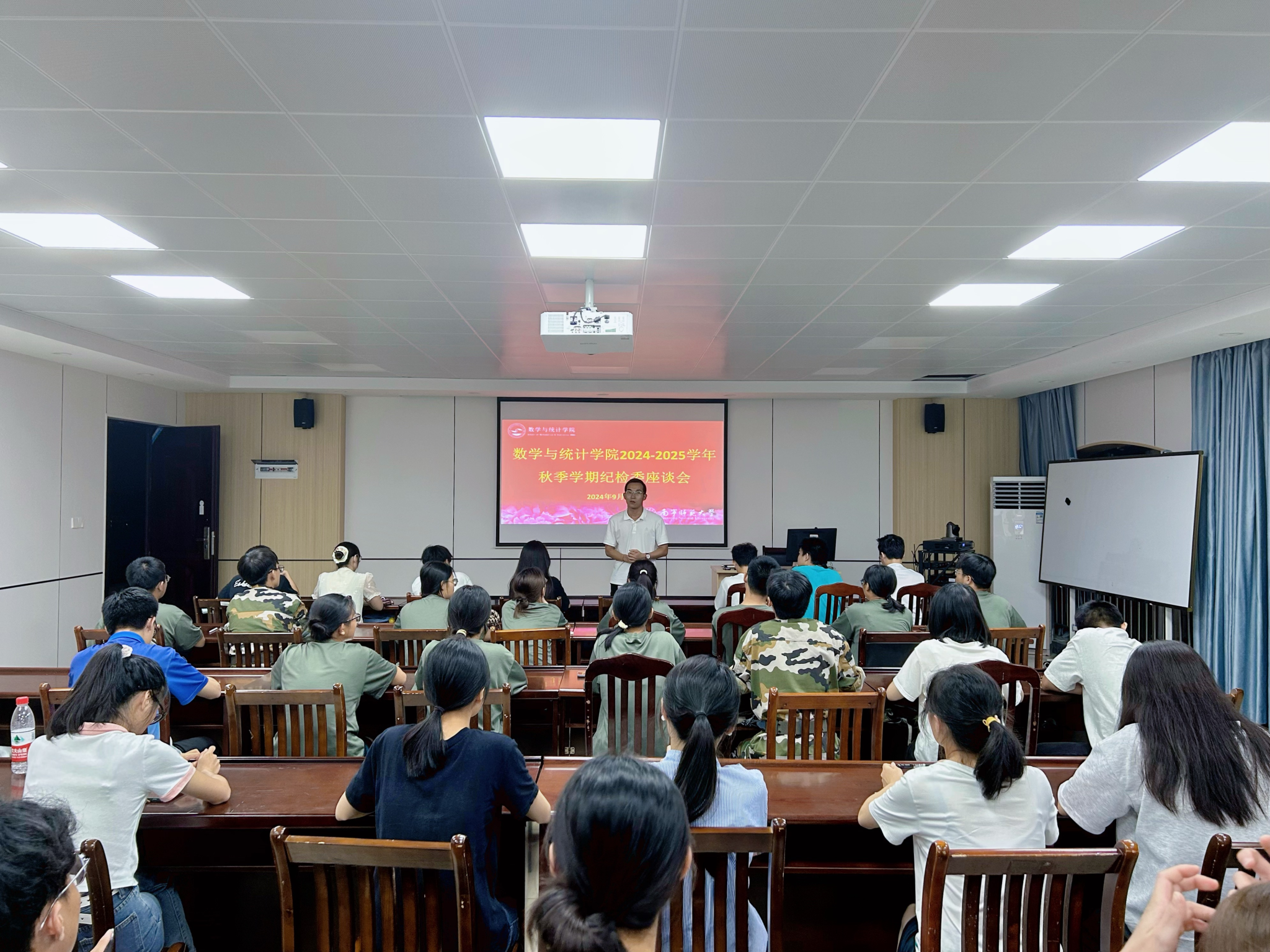 9月11日,suncitygroup太阳新城在数统楼A-601会议室召开2024年秋季学期纪检委大会暨纪检委座谈会。该院辅导员何振飞老师、团委员工会自律部成员、各班班长和纪检委员参加此次会议。
