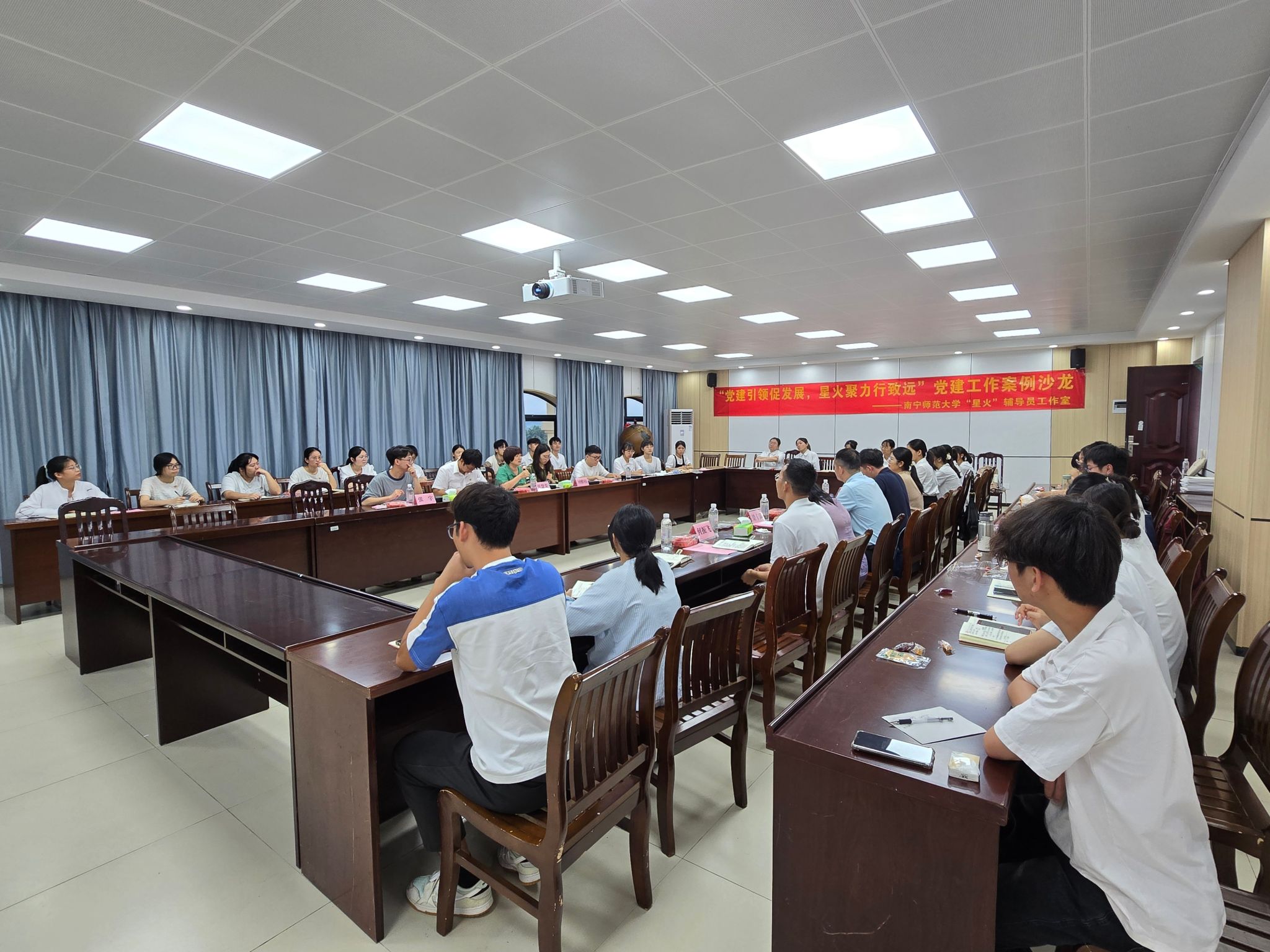 7月2日下午,suncitygroup太阳集团“星火”辅导员工作室举办“党建引领共提升,星火聚力行致远”党建案例沙龙,活动邀请了自然资源与测绘公司团委书记张慧荣老师、计算机与信息工程公司宋宏斌老师、环境与生命科学公司刘雅楠老师、音乐与舞蹈公司张宇老师、体育与健康公司农梦莲老师和该院全体辅导员、员工党支部党员代表共40余人参加此次沙龙,“星火”工作室负责人suncitygroup太阳新城党委付进副书记主持活动。
