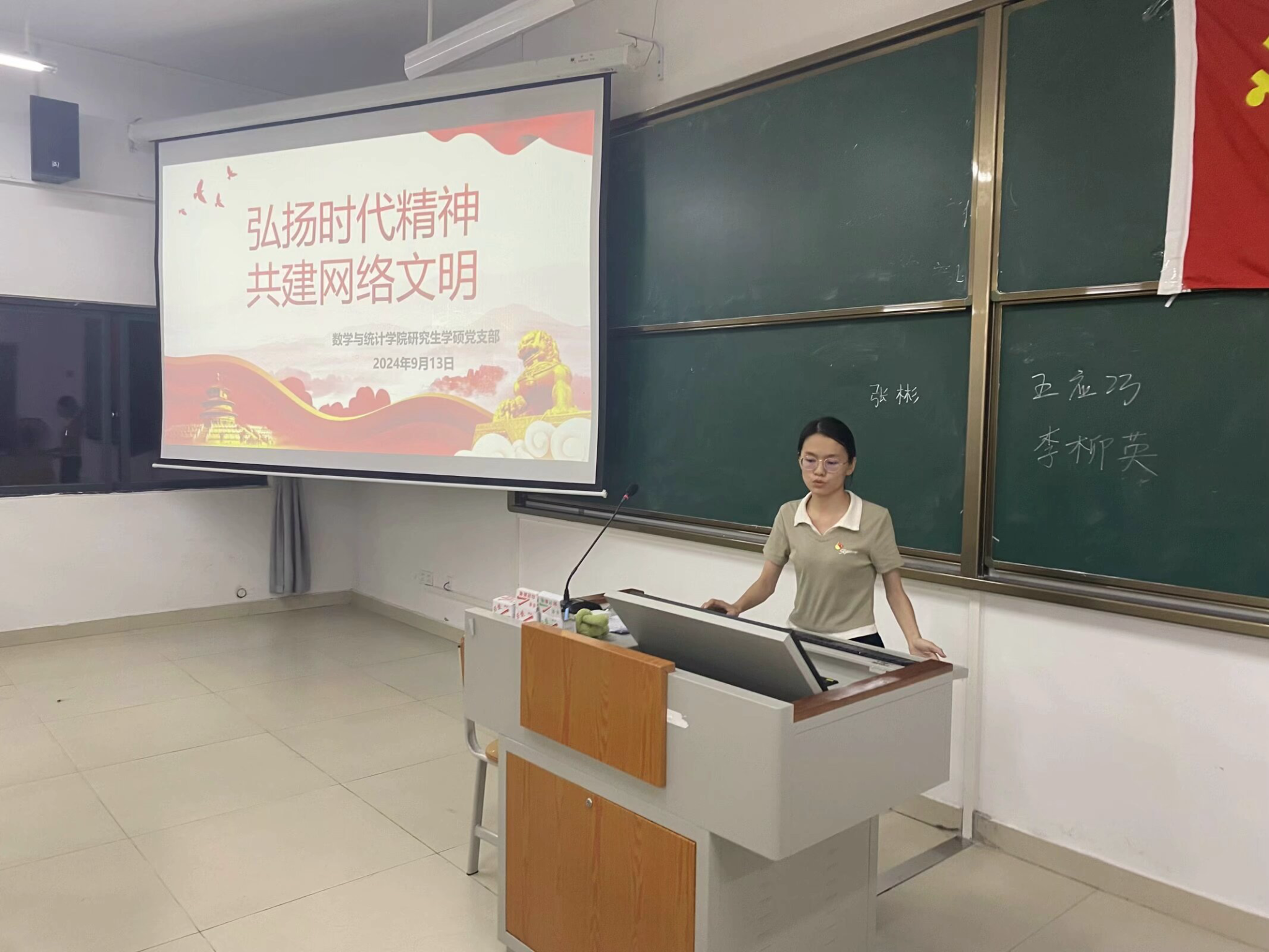 为进一步加强党员在网络文明建设中的榜样引领作用,9月13日晚,suncitygroup太阳新城研究生学硕党支部在2号实验楼-A104室组织开展“弘扬时代精神,共建网络文明”主题党日活动。此次党课由支部书记罗海燕同志主持,研究生学硕党支部全体成员参加。