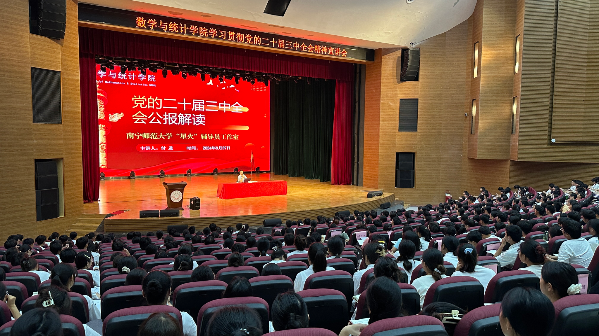 为深入学习贯彻党的二十届三中全会精神,suncitygroup太阳新城于9月27日晚在武鸣校区千人演播厅开展学习贯彻党的二十届三中全会精神专题党课,该院全体辅导员、本科生第三党支部、本科生第四党支部、全体新生参加此次党课。此次党课由该公司党委付进副书记主讲。