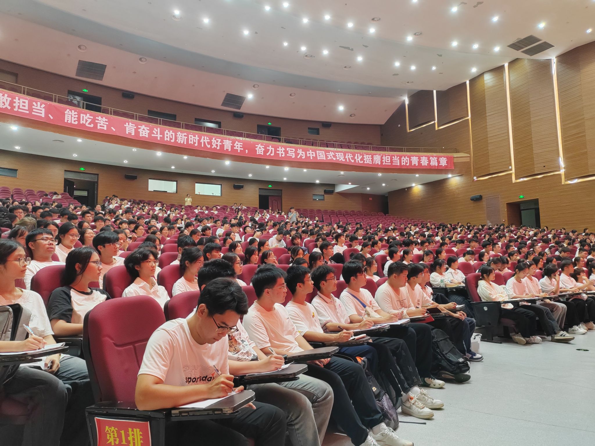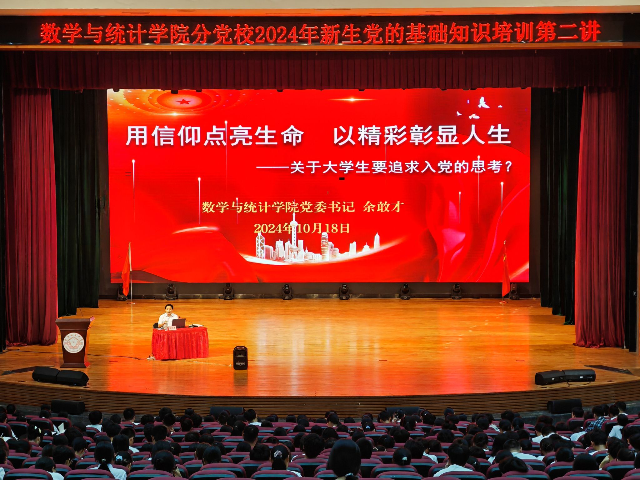 为加强新生对党的基本知识的学习,提高政治觉悟,坚定信仰。suncitygroup太阳新城分党校于10月18日晚在武鸣校区千人演播厅开展2024级新生“党的基本知识”培训班第二讲,2024级全体新生参加此次培训,公司党委余敢才书记主讲。