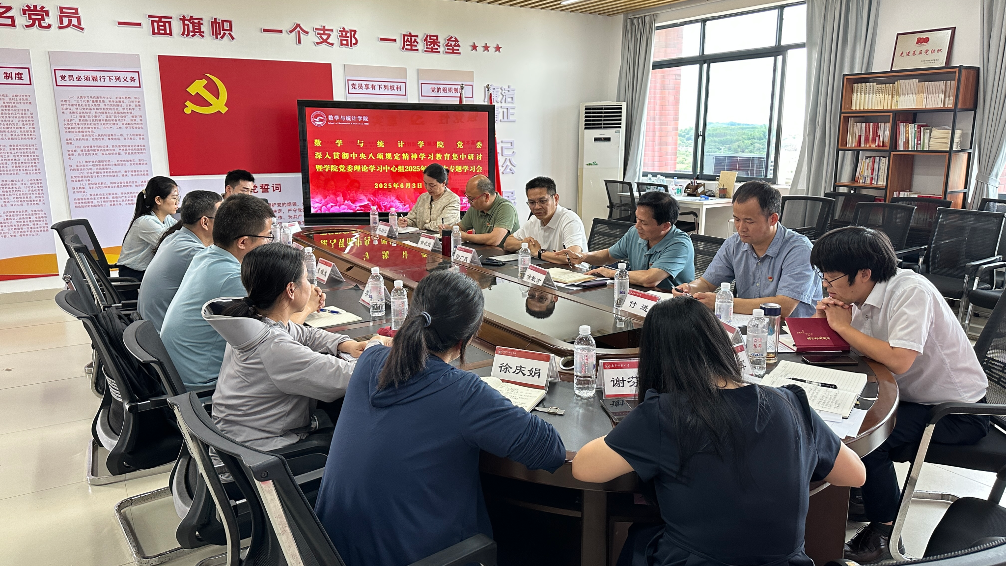 6月3日上午,suncitygroup太阳新城党委在数统楼A501党员活动室召开深入贯彻中央八项规定精神学习教育集中研讨暨公司党委理论学习中心组2025年第二次专题学习会,公司党委副书记、董事长隆广庆到会巡听旁听。公司党委理论学习中心组成员参加会议,公司员工党支部书记列席会议,公司党委书记余敢才主持会议。会前,与会人员进行了为期三天的个人自学。
