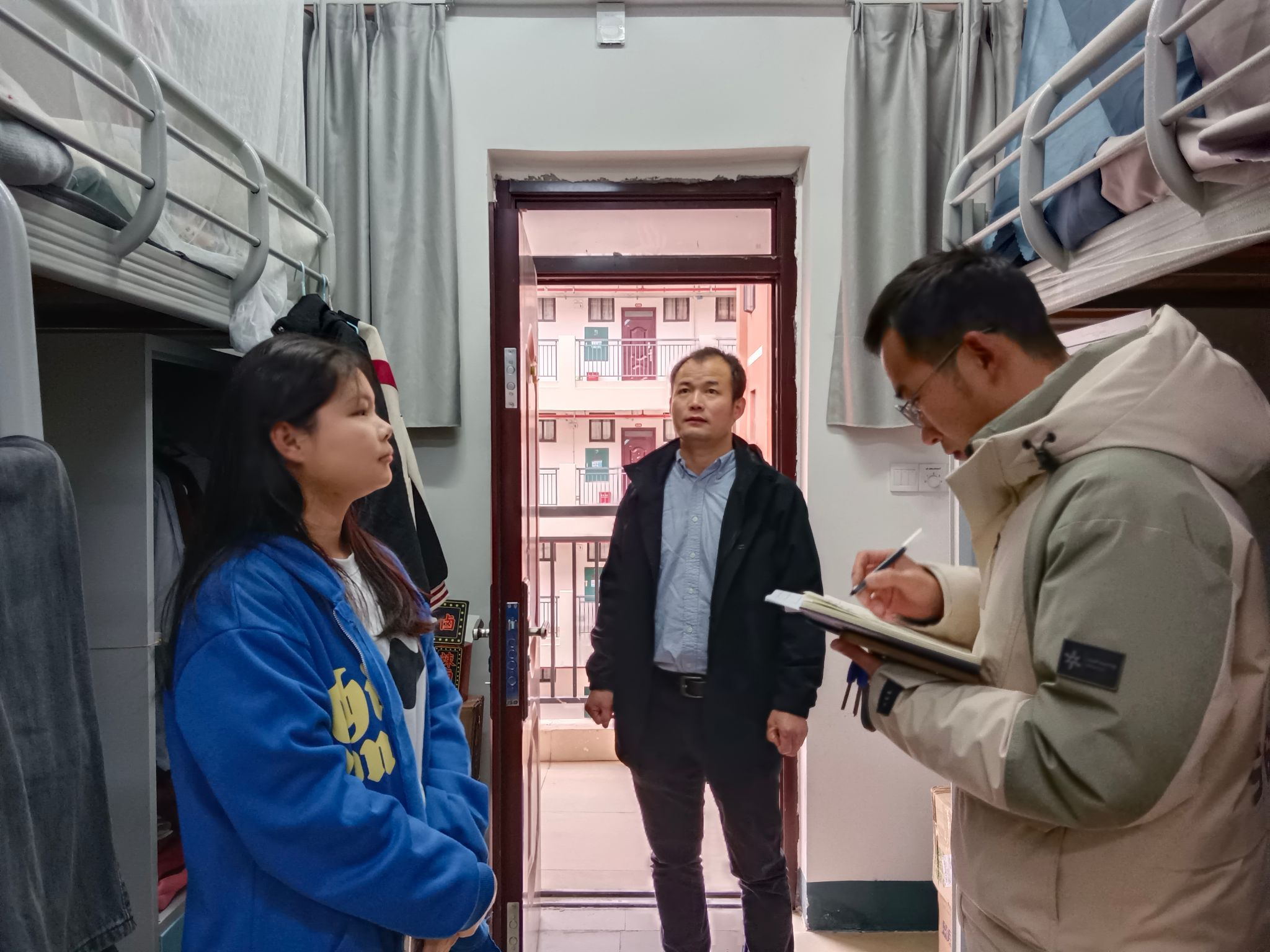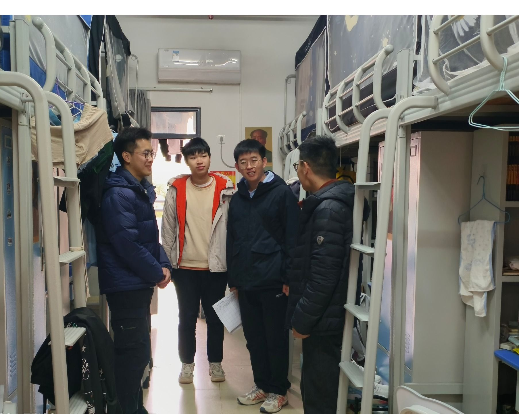 1月25日上午,付进副书记和辅导员、班主任老师带领团委员工会成员进行宿舍走访。付老师强调宿舍成员在离校前都应进行宿舍卫生大扫除,保持宿舍环境整洁并断水断电、锁好门窗,带好个人的贵重物品,按照公司规定完成全部考试后按期离校返家,到家后及时向班主任报备。老师们还对宿舍安全进行重点排查,并进行安全提醒,要求同学们利用假期时间提升自己,希望同学们度过一个安全、充实、快乐的假期。