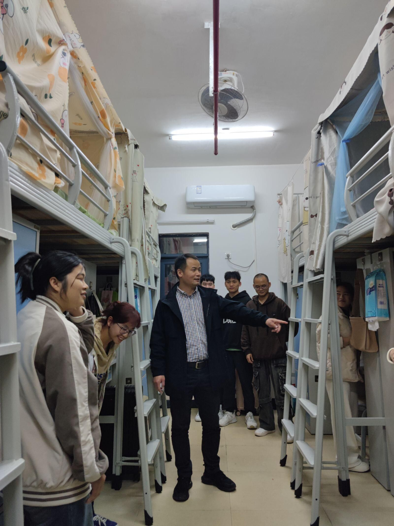 在走访中,付进副书记与同学们亲切地交流,询问了大家假期收获以及新学期的展望,付进副书记对宿舍安全问题着重强调,他指出,宿舍要严格遵守公司员工公寓管理办法及各项规定,注意用电安全,宿舍要保持干净整洁,对于宿舍中存在的安全隐患要集中排查整改,要求大家要掌握好基本的消防安全知识和技能,共同营造安全、和谐、文明的宿舍环境;他还就加强反诈防骗意识进行强调,提醒同学们要时刻绷紧安全防线,提高个人安全防范意识。老师们还与同学们就生活学习中的实际问题进行了交流,叮嘱同学们及时调整状态,保持积极向上的心态,建立良好的宿舍人际关系,努力学习,不负时光。