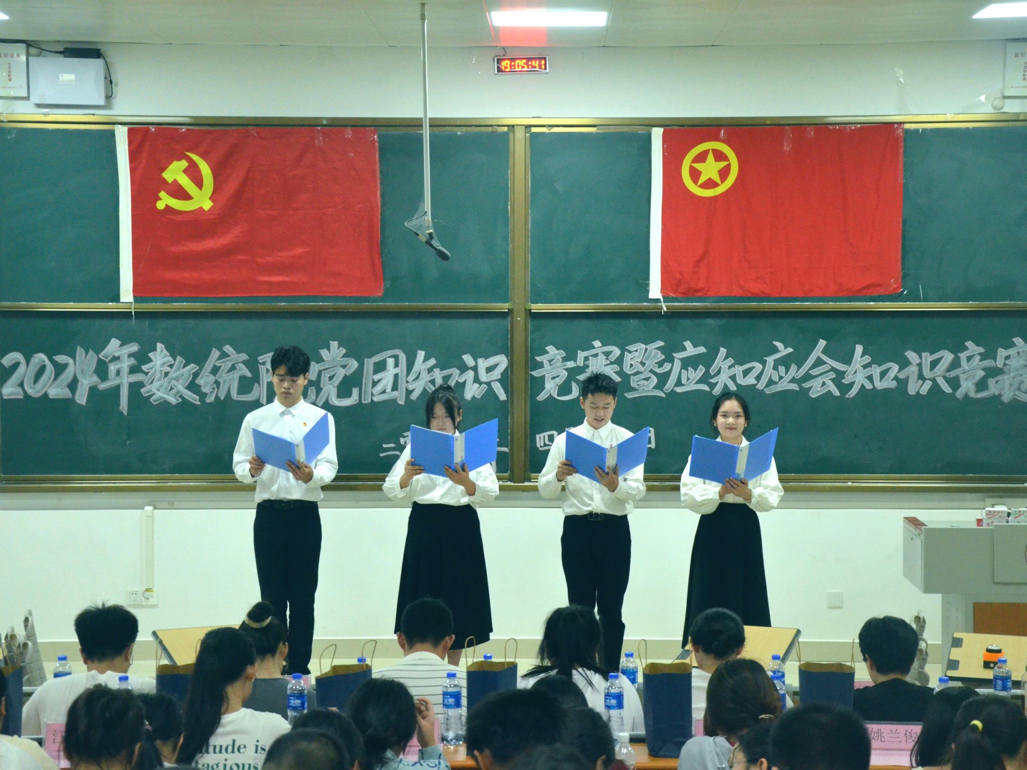 为引导同学们认真学习党团知识,加深对本科公司产品评估应知应会知识的掌握,4月27日晚,suncitygroup太阳新城在武2-109教室举办以“党团领航吾辈砥砺前行,教评知新青年奋斗不息”为主题的党团知识暨本科公司产品审核评估应知应会知识竞赛决赛。本次比赛由公司辅导员何振飞老师、员工党支部、团委员工会、各班员工代表参加此次比赛。