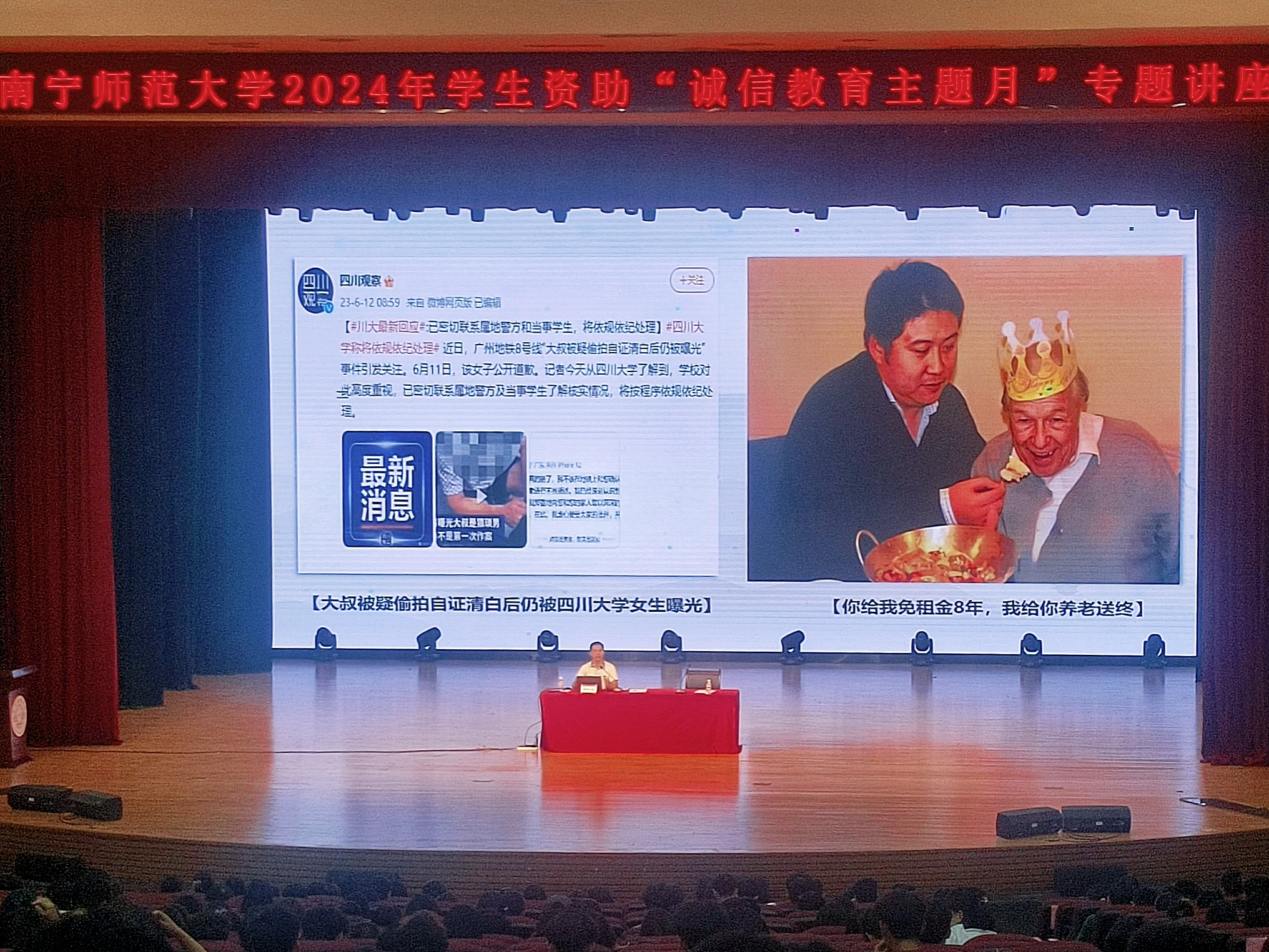 为进一步提高员工诚信意识,增强资助育人成效,6月25日下午,2024年全区高校员工资助“诚信教育主题月”专题讲座在武鸣校区音舞楼报告厅开展,suncitygroup太阳新城组织100名员工参加此次讲座。本次讲座由公司政策法规与发展规划处邓军彪处长主讲。