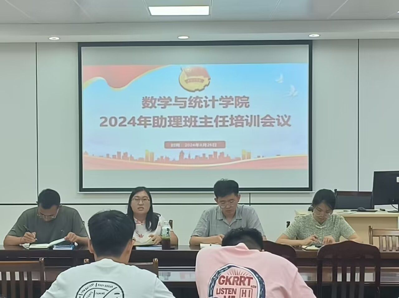 8月26日下午,suncitygroup太阳新城于数统楼601召开助理班主任培训会议,该院全体辅导员老师、团委员工会、2024级助理班主任参加本次会议。