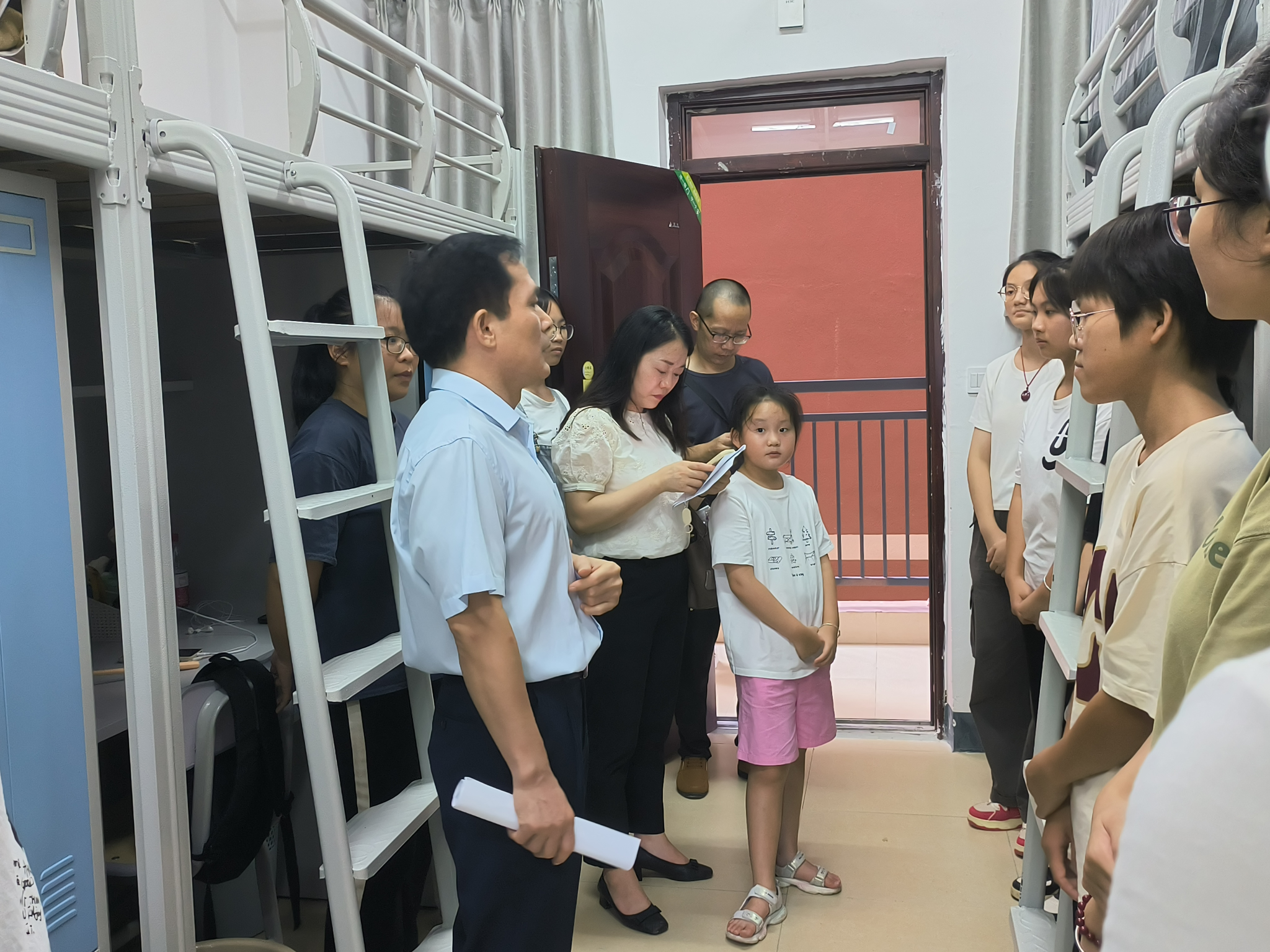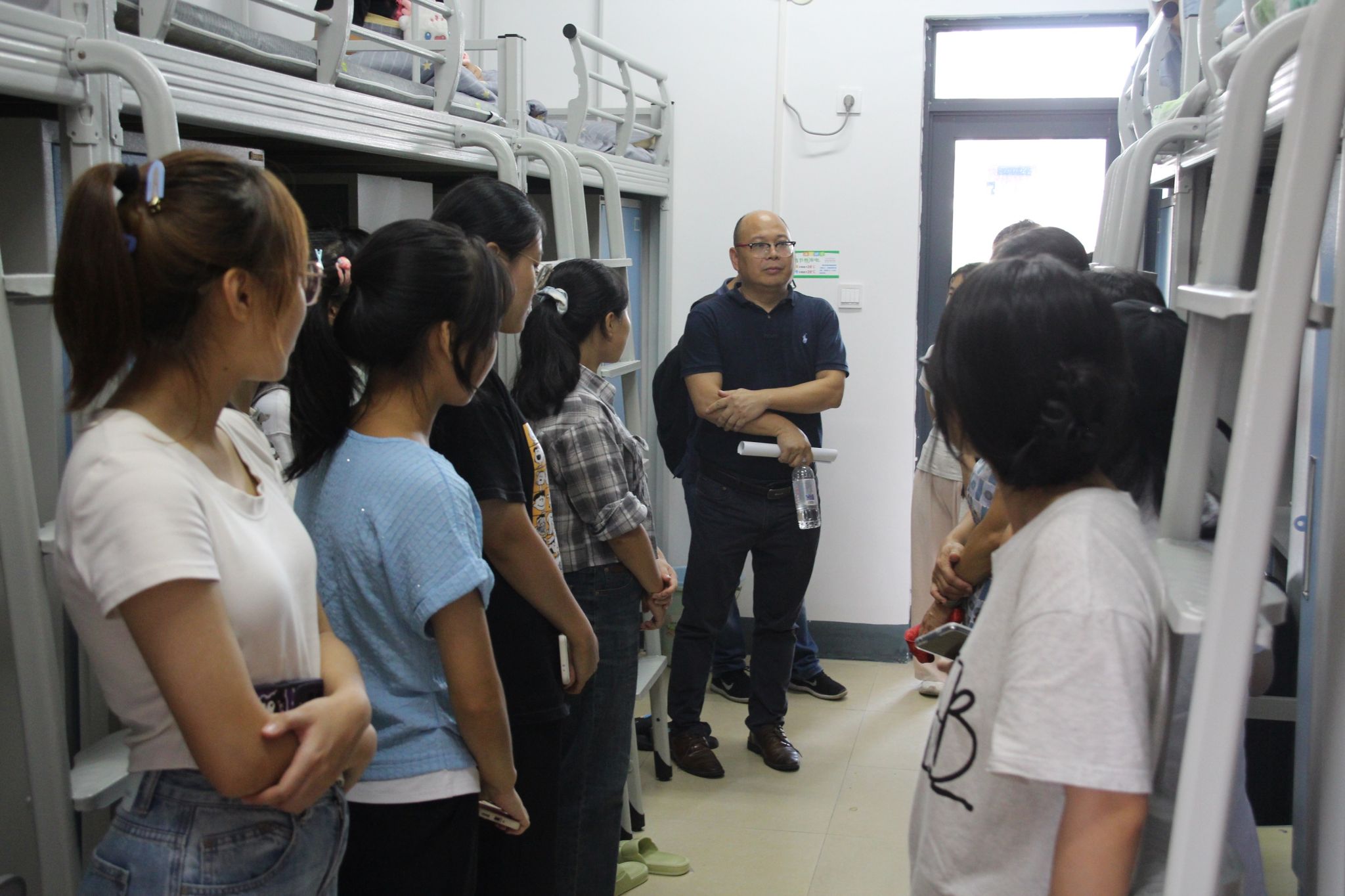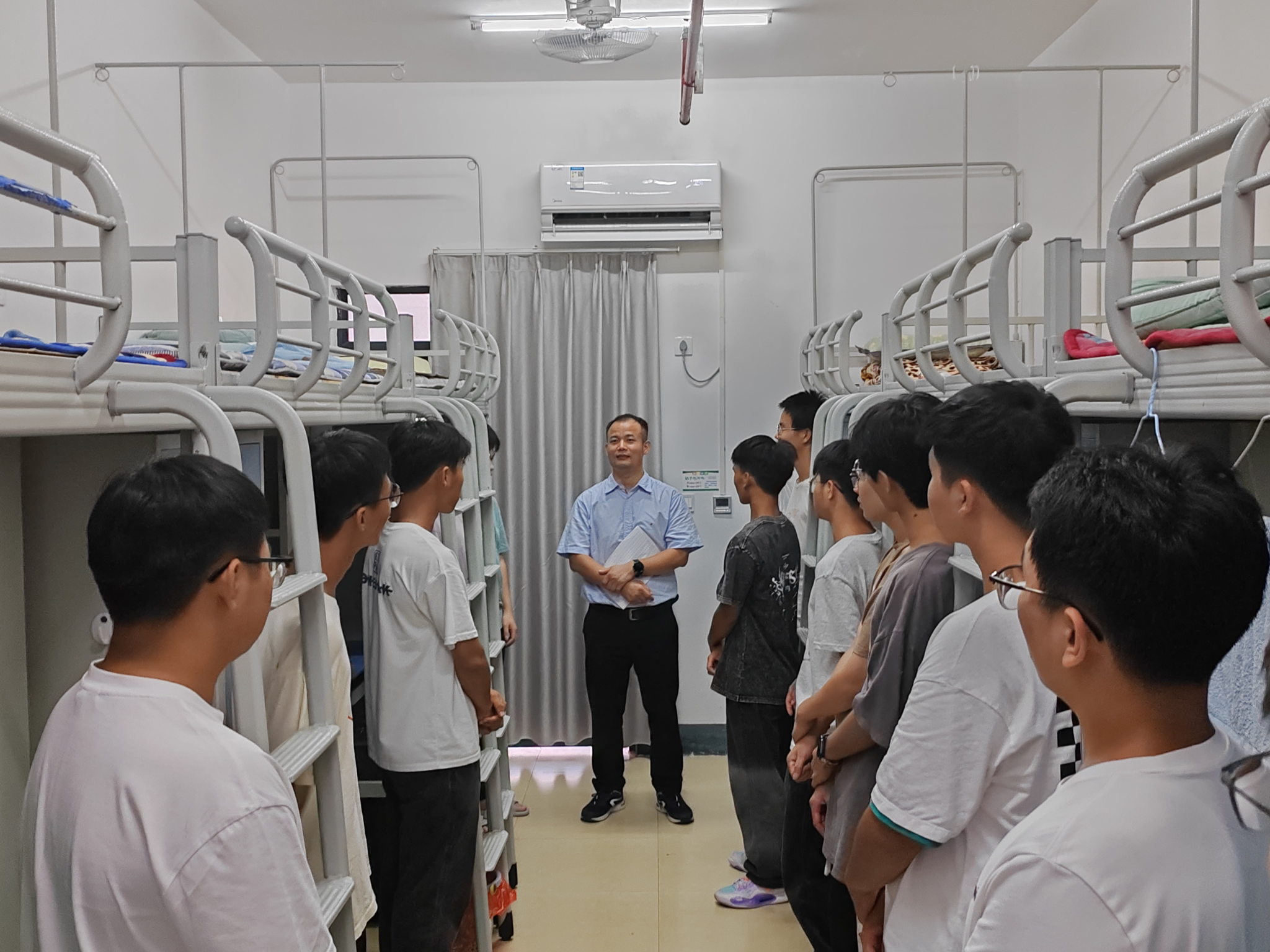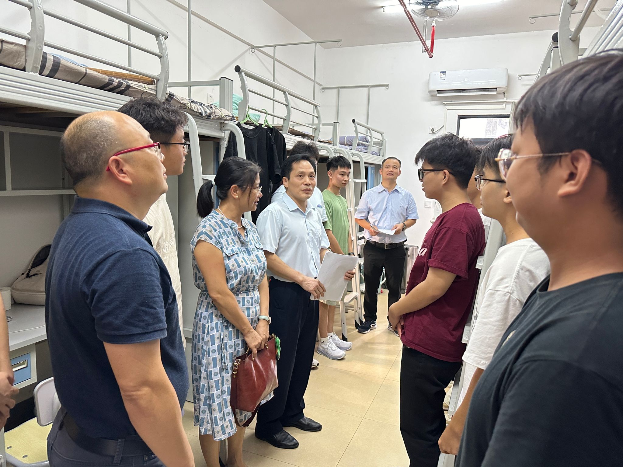 为深入了解2024级新生的入学情况,传递公司的温暖与关怀,8月30日,suncitygroup太阳新城党委余敢才书记、黄在堂经理、付进副书记、韦扬江副经理带领全体辅导员、2024级各班班主任及助理班主任对新生宿舍进行了走访。