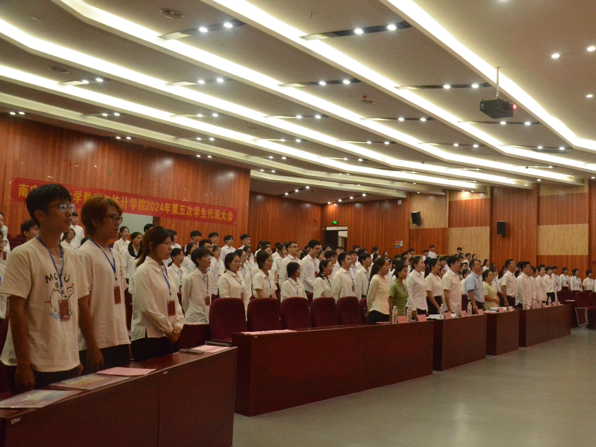 正式会议在庄严的国歌中拉开序幕,辅导员梁卡霖老师为本次大会致开幕词,梁老师肯定了员工会在过去一年取得的成长与进步,同时希望新一届的员工干部能积极响应习近平总书记关于青年工作的重要指示和关于教育的重要论述,为构建更加和谐、进取、创新的氛围贡献青春力量。校员工会代表杨柳依同学对此次大会的顺利召开表示祝贺,并希望新一届的员工骨干能够开拓创新、锐意进取、脚踏实地。李雨姗同学代表第四届员工会成员对这一年员工会工作作出总结,希望新一届员工会要与时俱进,用思想武装头脑,通过团结协作优化组织建设,充分展示数统风采。