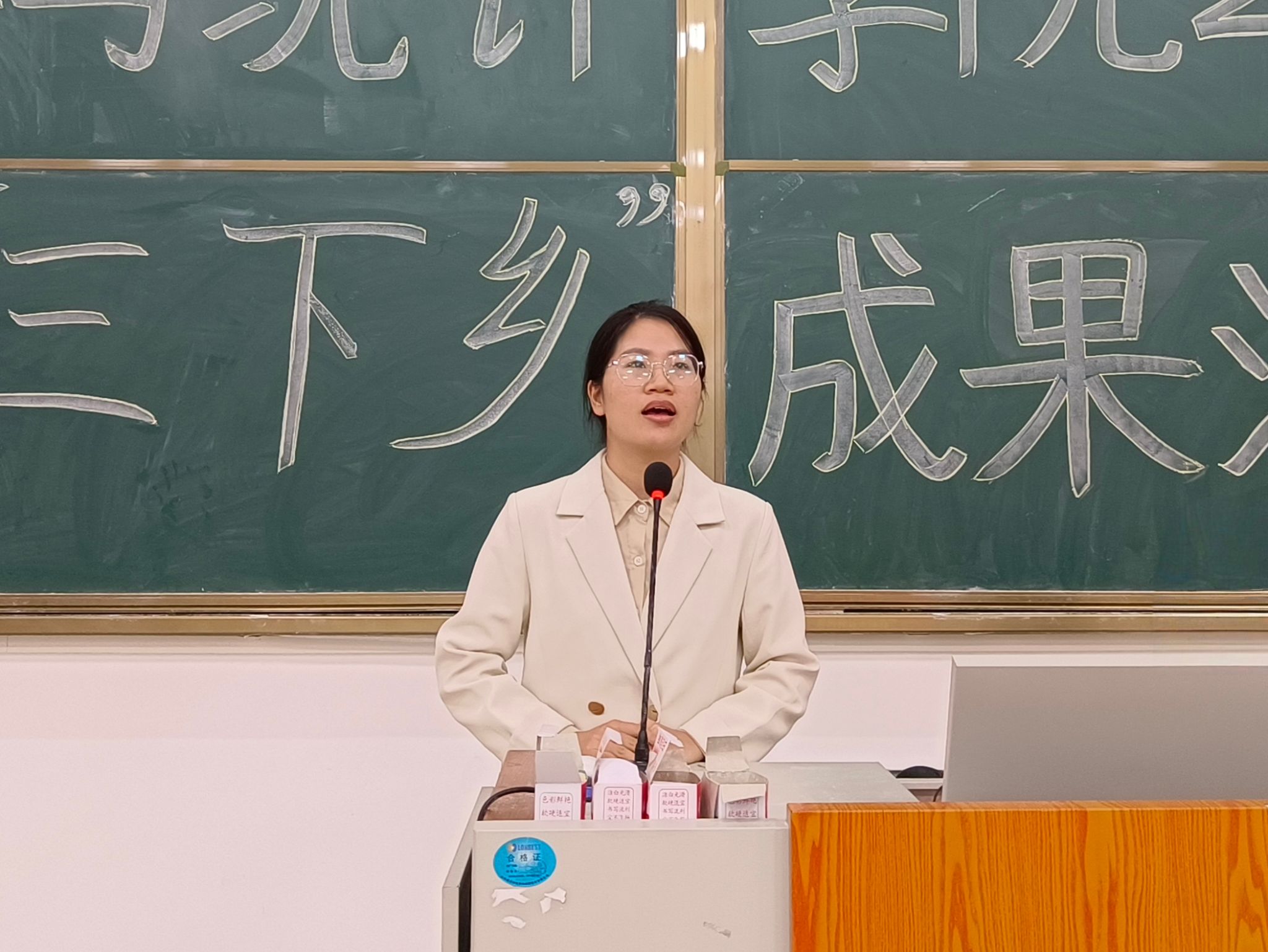 辅导员林敏华老师首先从“三下乡”社会实践活动的内涵、意义以及时代要求等方面向同学们进行讲解,她肯定了同学们身上所展现出的社会担当和服务精神。“三下乡”实践服务队队员们从自身感悟、团队建设、取得的成果等方面与同学们进行分享。辅导员梁卡霖老师总结指出,本次活动充实且富有实际意义,她在满满的回忆中感受到了朝气蓬勃的青春力量和乐于奉献的服务精神;同时对未来进行展望,鼓励同学们积极投身于社会实践,用温情、知识、行动服务社会,共同欣赏人生路上美丽的风景。会议最后,辅导员梁卡霖老师、林敏华老师为队员们颁发“优秀青年志愿者”证书。