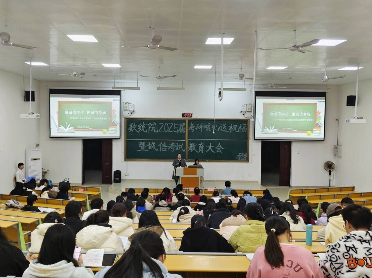 为了鼓舞考研学子士气、传递公司关怀,进一步强化诚信考试意识,共筑公平公正的考试环境,12月18日晚,suncitygroup太阳新城于实验2-B105顺利召开了考研暖心送祝福暨诚信考试教育大会。公司团委书记梁卡霖老师,兼职辅导员,研究生代表李观招学姐和考研学子们参加此次大会。