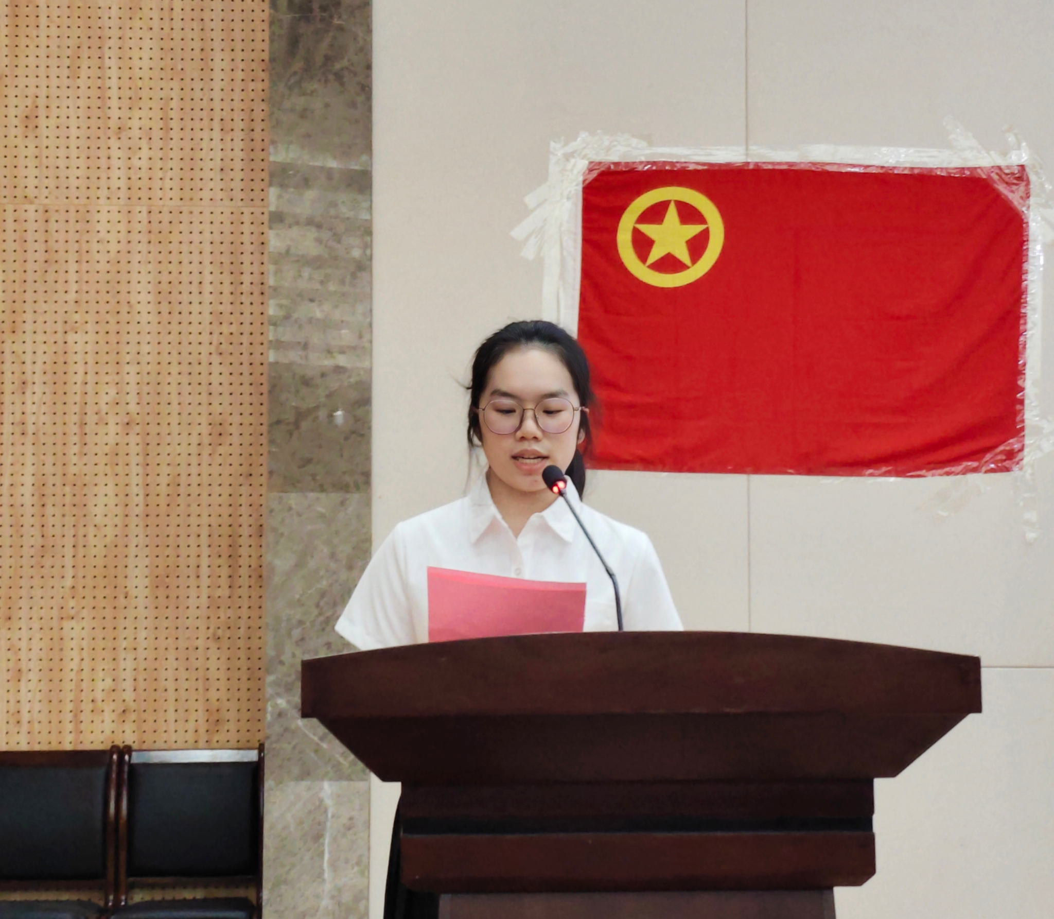 入团仪式结束后,团委梁卡霖书记围绕“赓续五四薪火,绽放青春光芒”的主题开展主题团日活动。她从“五四风雷:历史的回响”“精神传承:永恒的旗帜”“青春绽放:时代的担当”“展望未来:续写新辉煌”四个部分,通过视频和案例,深入阐述了五四运动历史背景、精神内涵和时代价值,激励青年传承五四精神,勇担时代使命。