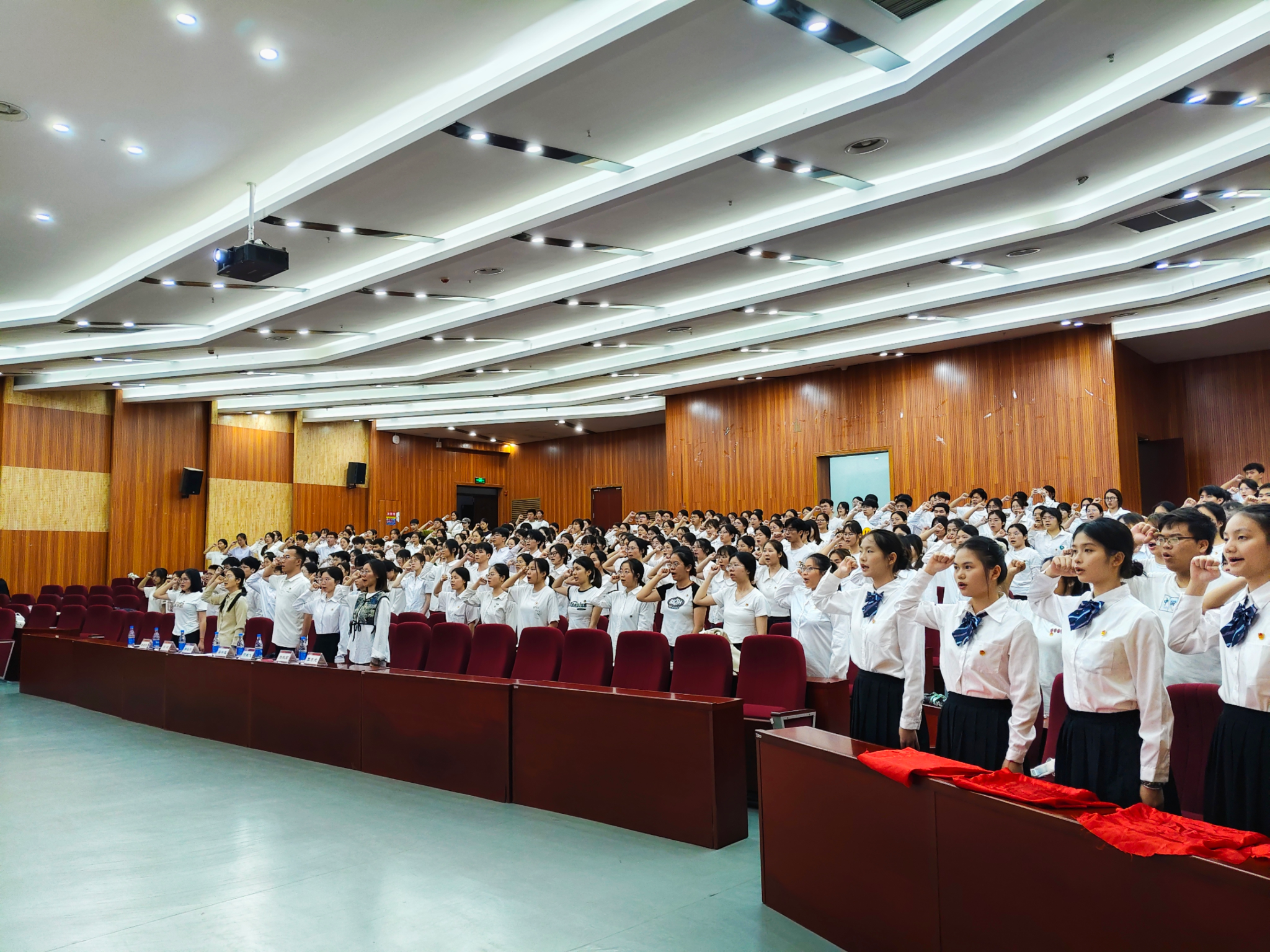 入团仪式在庄严的国歌声中拉开帷幕,主持人宣读了新团员名单,本次共有45名同学光荣加入共青团,公司辅导员为新团员们颁发团徽。在团旗下,公司辅导员张硕老师带领新团员们庄严宣誓,展现出新时代青年的朝气和斗志。新团员代表梁庆民同学在发言中表达了加入共青团的喜悦与自豪,并承诺将以团员的标准严格要求自己,他号召同学们争当新时代的先锋模范。优秀团员代表廖阳阳同学则分享了自己的成长经历和感悟,鼓励新团员们奉献自我、提升自我,为实现中华民族伟大复兴而奋斗。公司团委梁卡霖书记向新团员们提出了希望和要求。她希望新团员们遵规守纪,树立远大理想;服务他人,弘扬奉献精神;扎实学识,锤炼过硬本领。同时,她还鼓励全体团员提高自身素质,书写无愧于时代的青春华章。