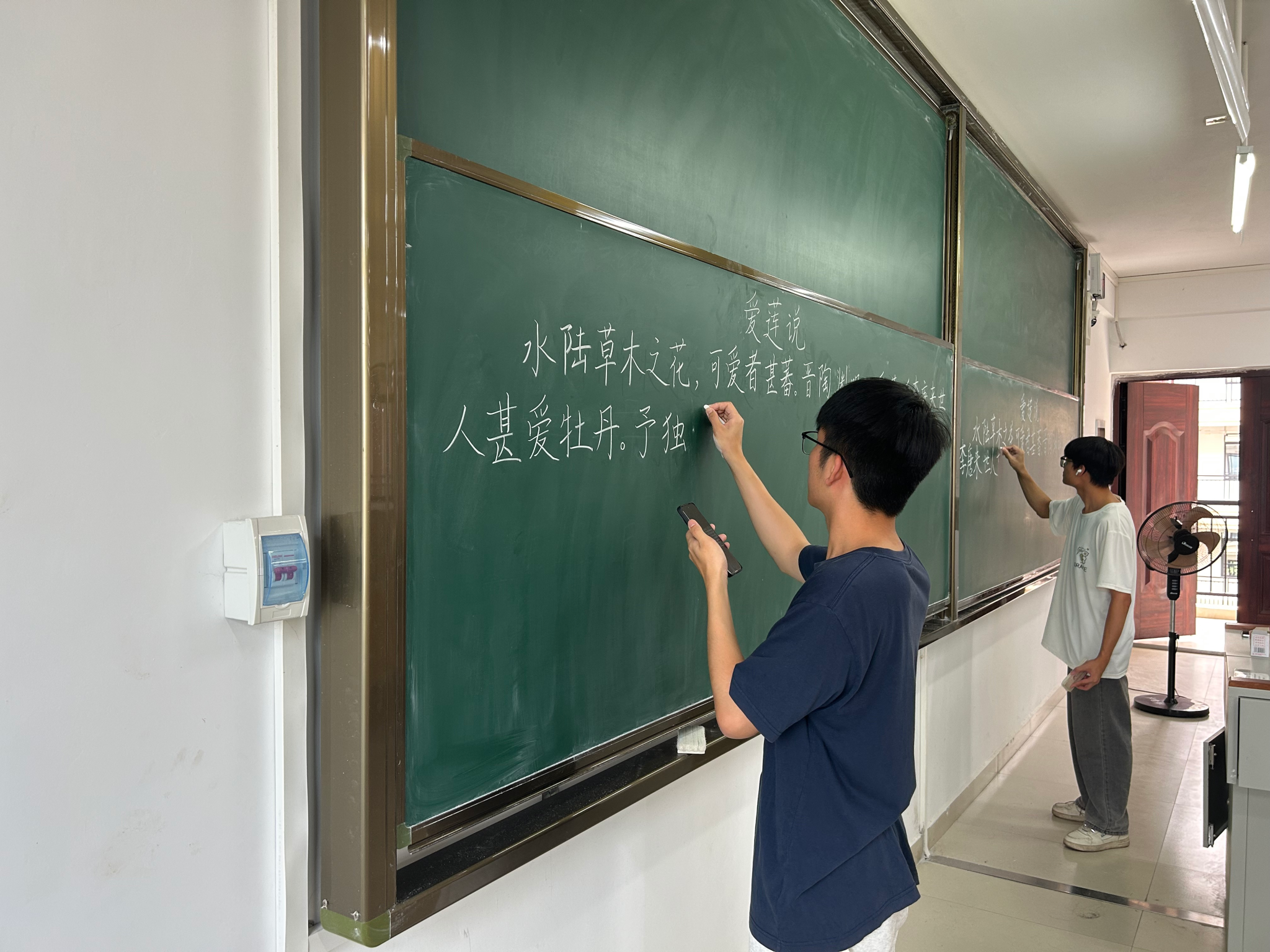 比赛现场,选手们屏息凝神,以粉笔、钢笔、毛笔为媒介,在黑板上书写板书设计、在方格纸上创作硬笔作品、在宣纸上挥洒毛笔书法。粉笔字组中,选手们笔触流畅,刚劲有力;钢笔字环节,参赛者专注凝神,字迹工整规范,展现出严谨的求学态度;毛笔字赛场则墨香四溢,行云流水的笔法间尽显传统文化的深厚底蕴。