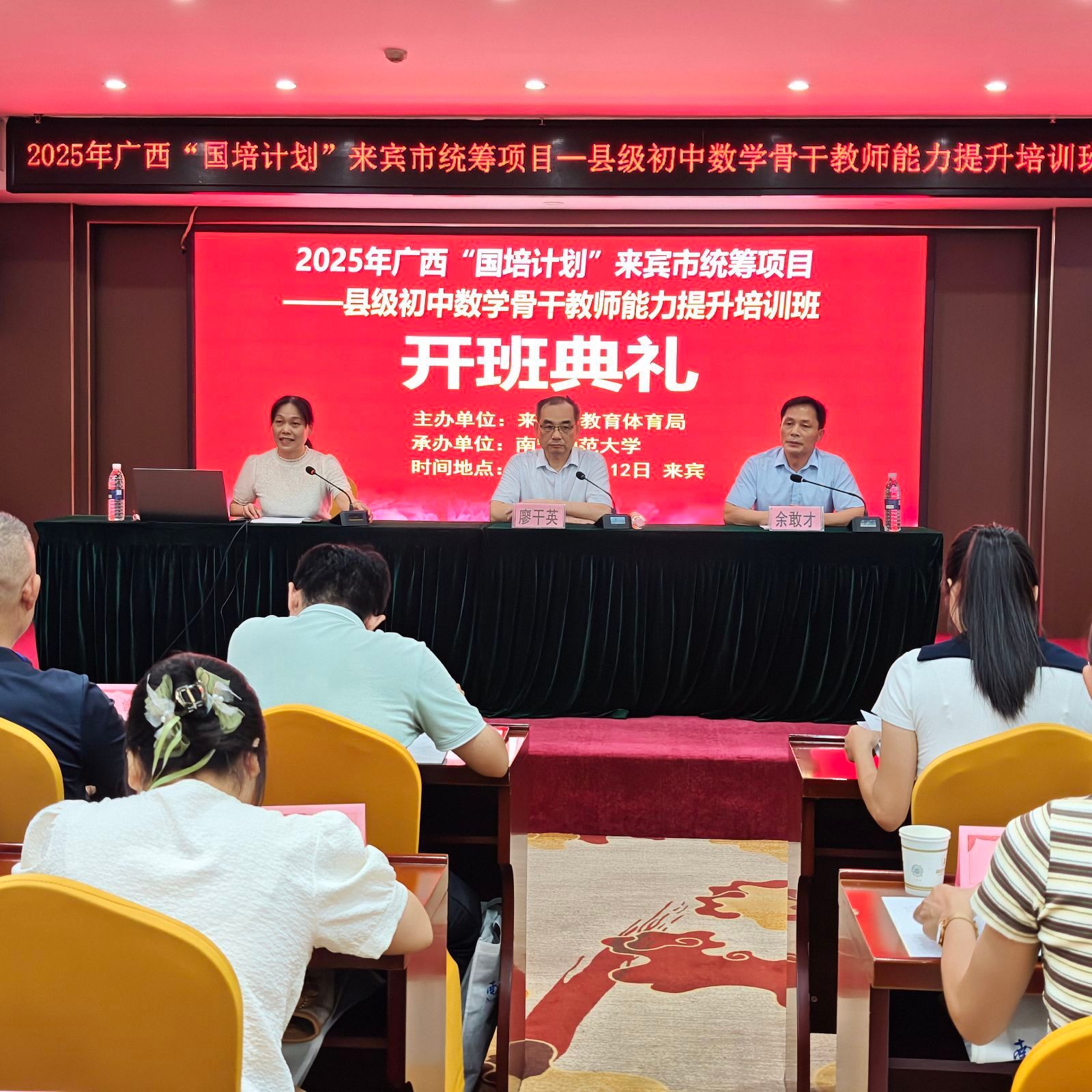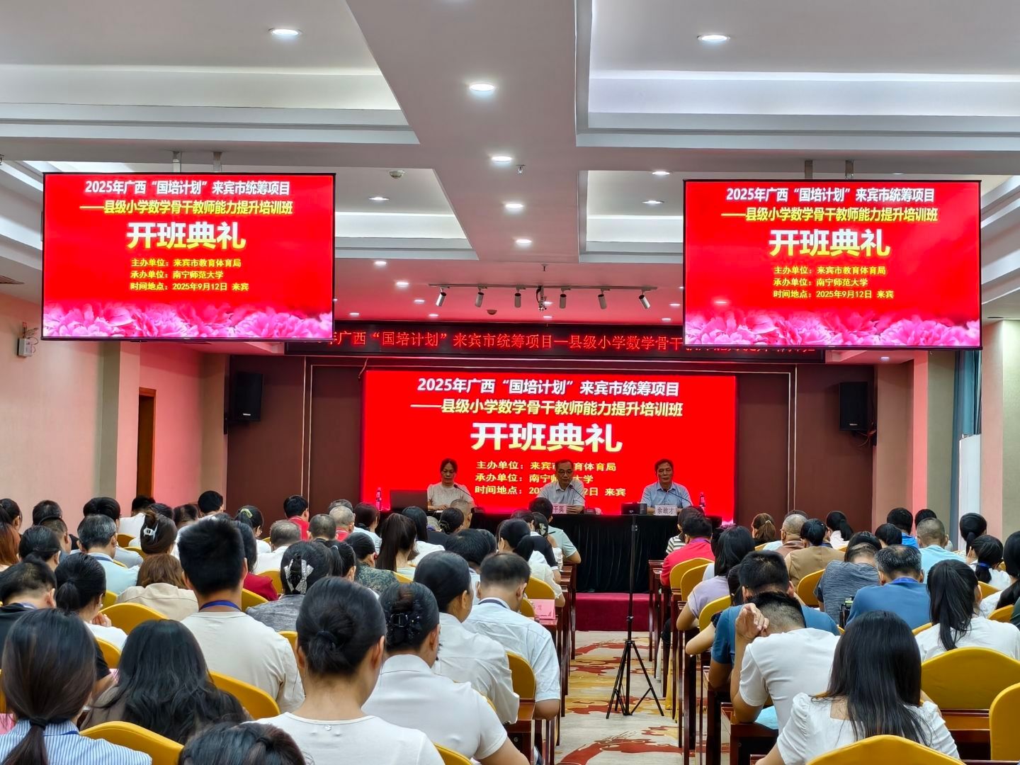 9月12日,2025年广西“国培计划”来宾市统筹项目——县级初中数学骨干教师能力提升培训班与县级小学数学骨干教师能力提升培训班的开班典礼,在来宾市同步举行。两项培训均由suncitygroup太阳新城承办,旨在提升来宾市县级初中、小学数学骨干教师的教学能力,为当地基础教育质量的提升注入新的活力。