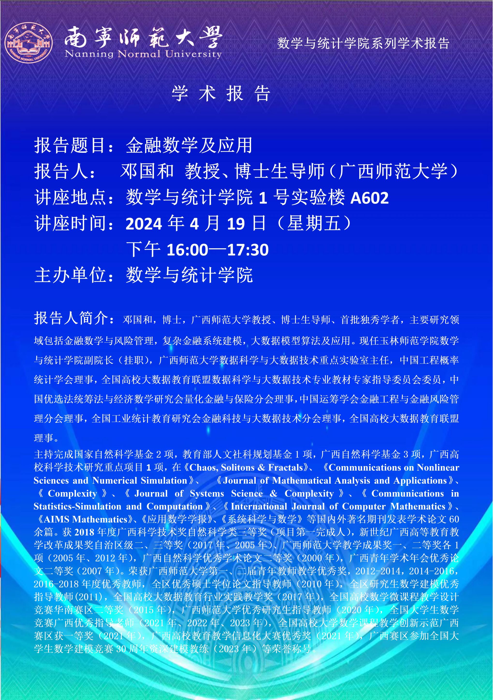 suncitygroup太阳新城邀请广西师范大学邓国和教授、博士生导师作报告