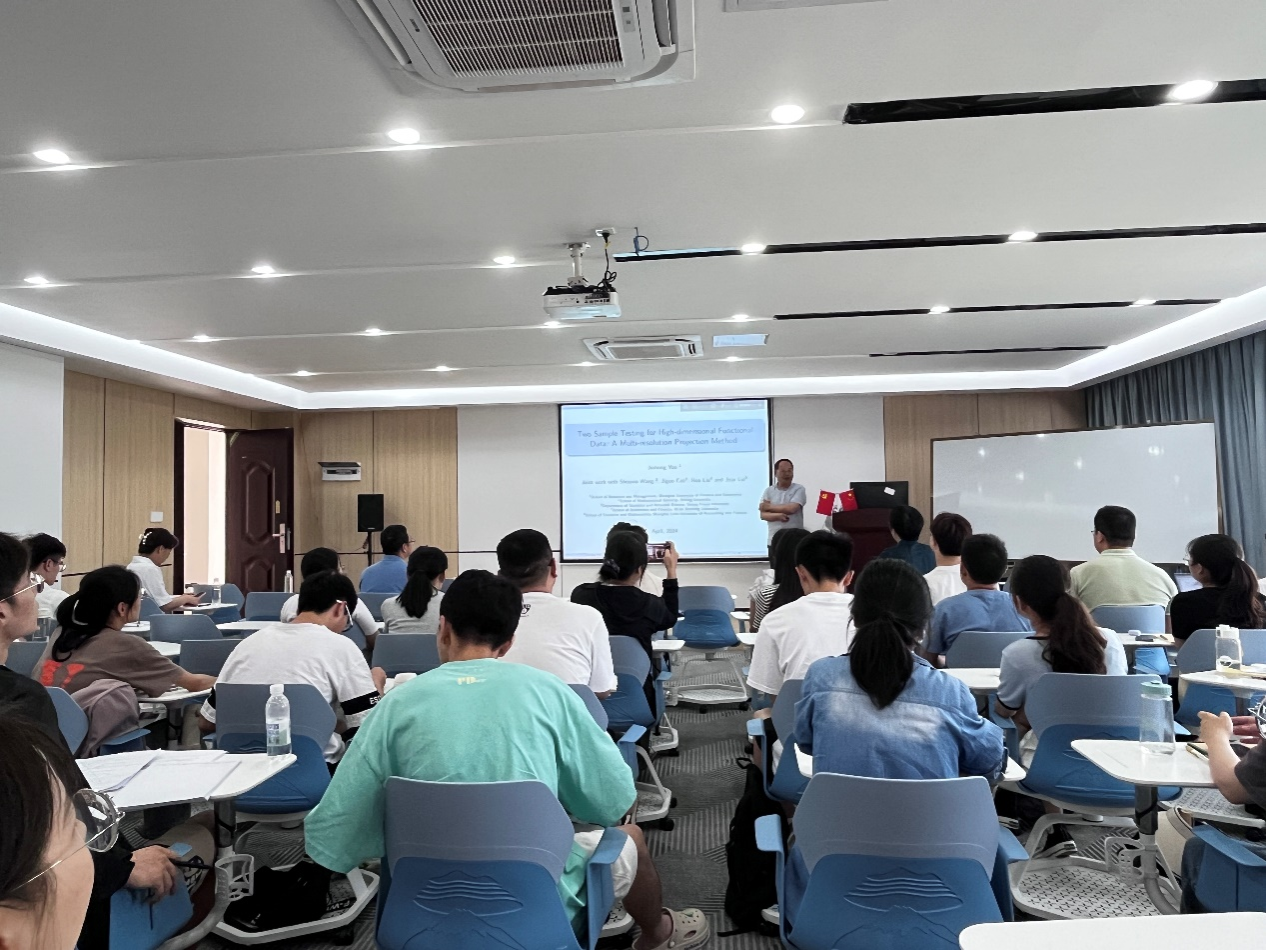 2024年4月25日,应广西应用数学中心(suncitygroup太阳集团)的邀请,华东师范大学吴贤毅教授和上海财经大学尤进红教授为suncitygroup太阳新城师生分别作了题目为《Statistics and Artificial Intelligence》、《Two Sample Testing for High-dimensional Functional Data: A Multi-resolution Projection Method》的学术报告。报告由suncitygroup太阳新城经理助理刘利斌教授主持,部分老师和所有学术研究生参加了此次学术活动。