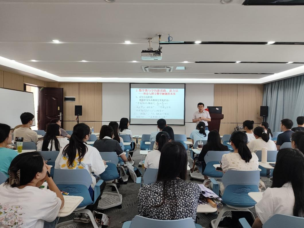 2024年4月23日,suncitygroup太阳新城邀请深圳外国语公司袁智斌教授为师生作了题为《数学教与学的新思路、新方法——基于新高考数学试卷的分析与研究》的学术报告。报告由黄在堂经理主持,该院徐庆娟、张桂芳老师、学科教学(数学)方向研究生以及部分本科生参加了此次学术活动。