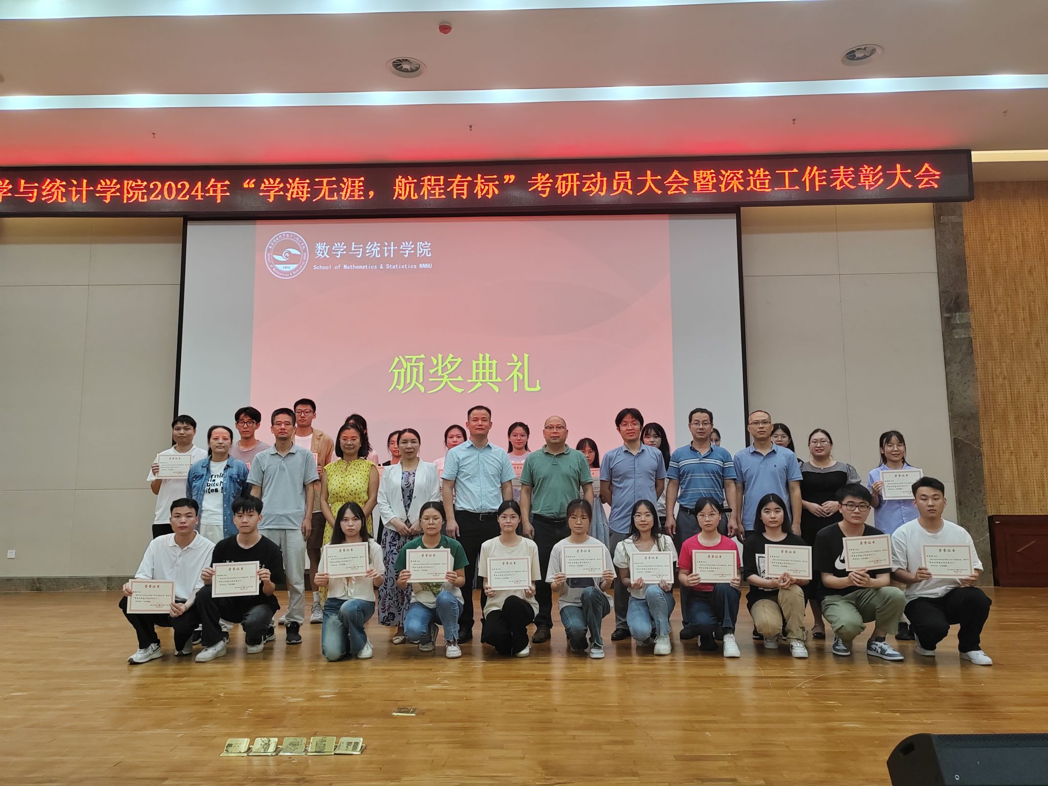 会议最后举行了隆重的深造工作颁奖仪式,全体参会领导教师为获得“2024年深造先进个人”的36名考博、考研拟录取的毕业生进行颁奖。