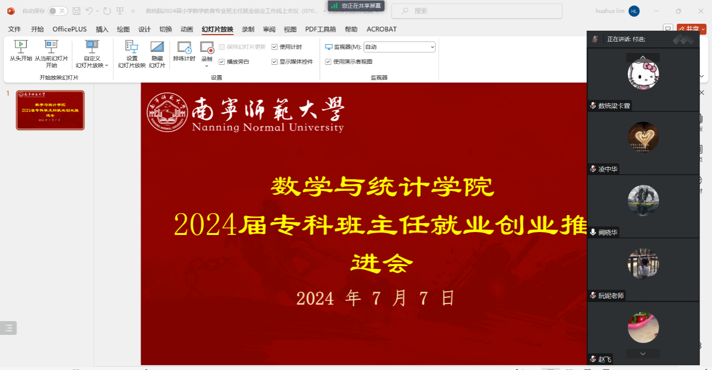 为推动小学数学教育专业毕业生就业进度,7月7日下午,suncitygroup太阳新城在线上召开2024届小学数学教育专业就业创业工作会议,该公司党委付进副书记、赵飞老师、小学数学教育各班班主任和辅导员梁卡霖、林敏华老师参加此次会议。会议由林敏华老师主持。